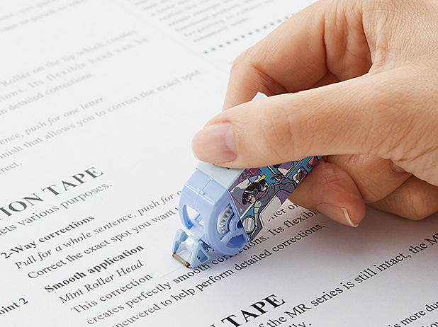 プラスチック使用量を40%削減(当社ホワイパープチと比較)したエコな修正テープ。本体ケースとキャップは、サトウキビの搾りカスからつくられた、バガスパルプ配合の紙を使用。