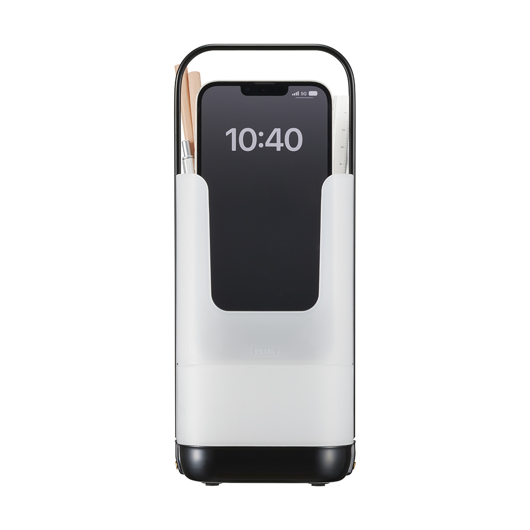 • 本体サイズ:全体外形寸法:W103×D100×H253 mm(持ち手込)、上部収納内寸:W95xD76xH108mm、下部収納内寸:W95xD95xH56mm、スマホスタンド部内寸:W93xD17xH108mm